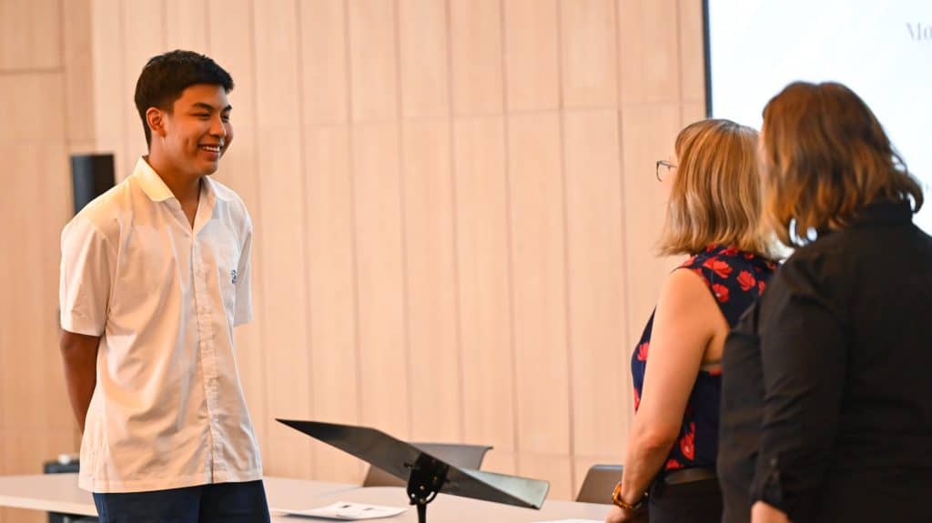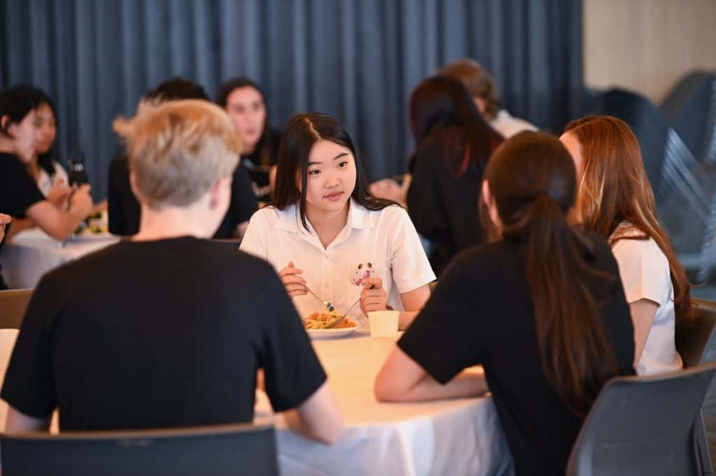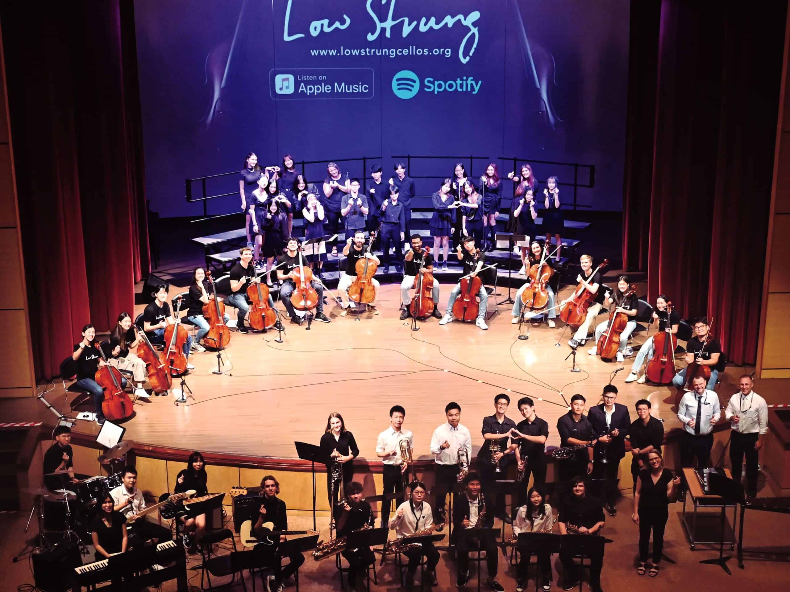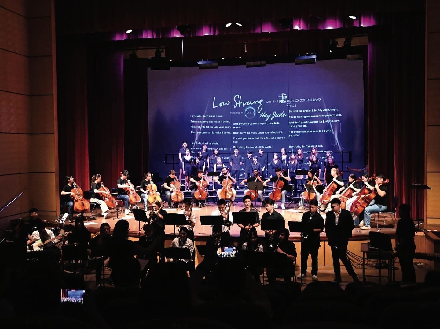 Aside from performance opportunities, Tri-M members actively engage in community service. In early January 2024, RIS’ Tri-M chapter helped present a special after-school charity concert, where members performed with cello rock group Low Strung, a renowned ensemble of Yale undergrad musicians. 🎶🎻 The event raised over ฿20,000 to support the Pattaya Redemptorist School for the Blind. đź’™ The Yale undergraduates, some Tri-M Music Honor Society members themselves, joined a Tri-M membership lunch that was personal, easy, and meaningful for the RIS students.Â