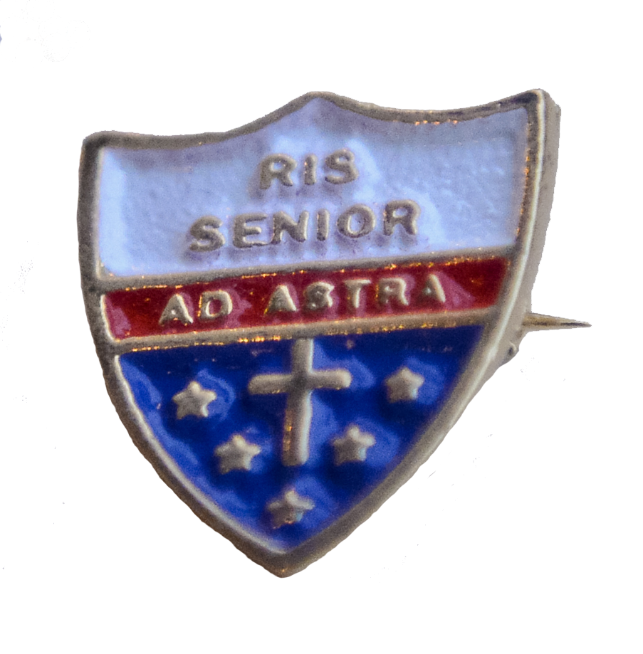 The school motto is engraved in the RIS Senior pin, which is shaped like a shield and bears the Latin words Ad Astra above the symbol of a cross and five stars. Translated “to the stars,” Ad Astra encourages every student to aim for the best, not only in their education but also in their personal and spiritual growth.